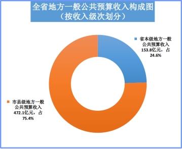 分级次看,省本级收入153.8亿元,增长4.1%;市县级收入472.1亿元,增长0.9%。